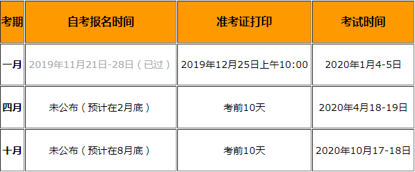 二、2020年廣東成人自學考試報名考試時間匯總如下: