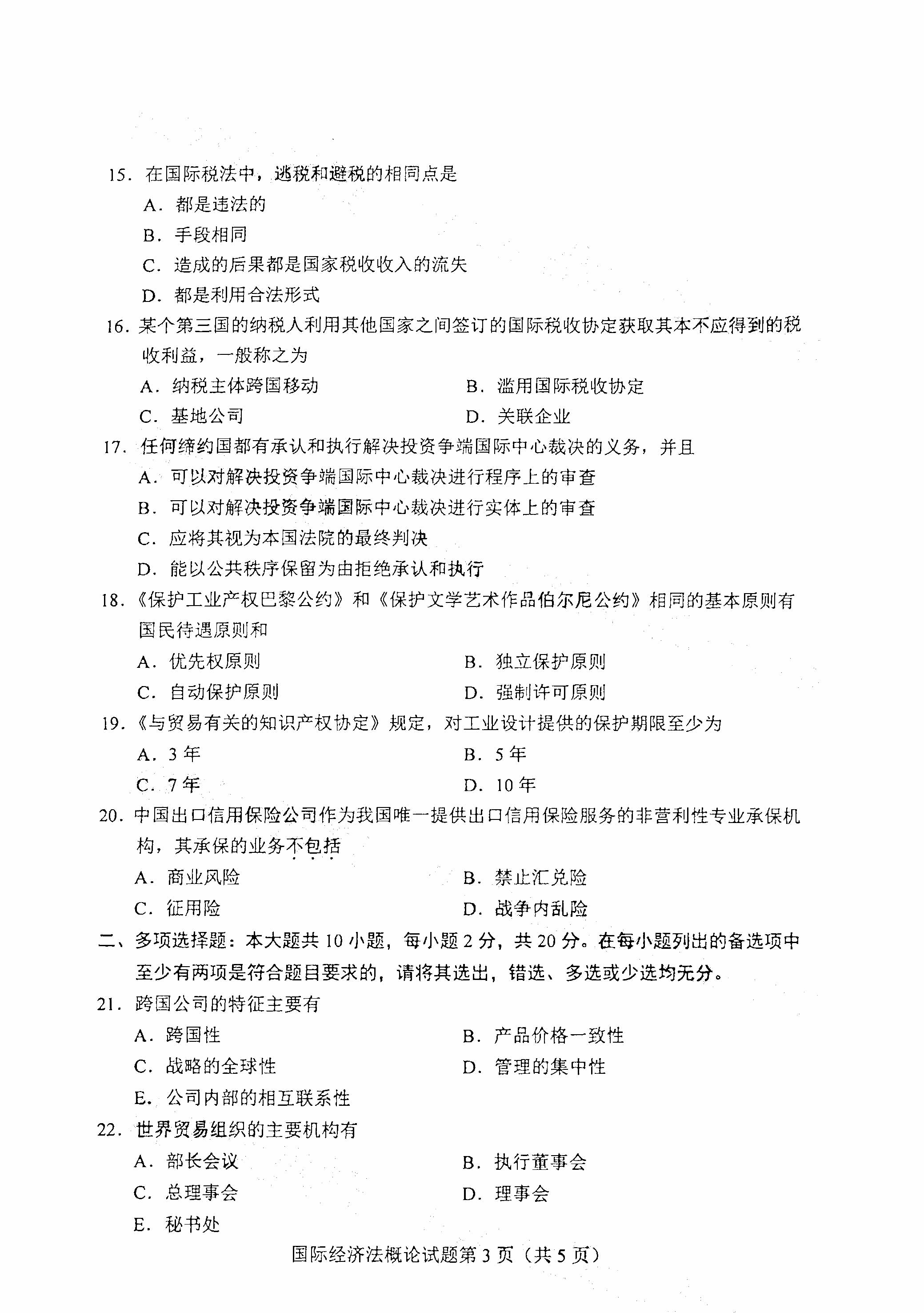 所在位置:廣東省自考網(wǎng) > 試題題庫(kù) > 自考試卷 > 廣東2021年4月自考00246國(guó)際經(jīng)濟(jì)法概論真題試卷