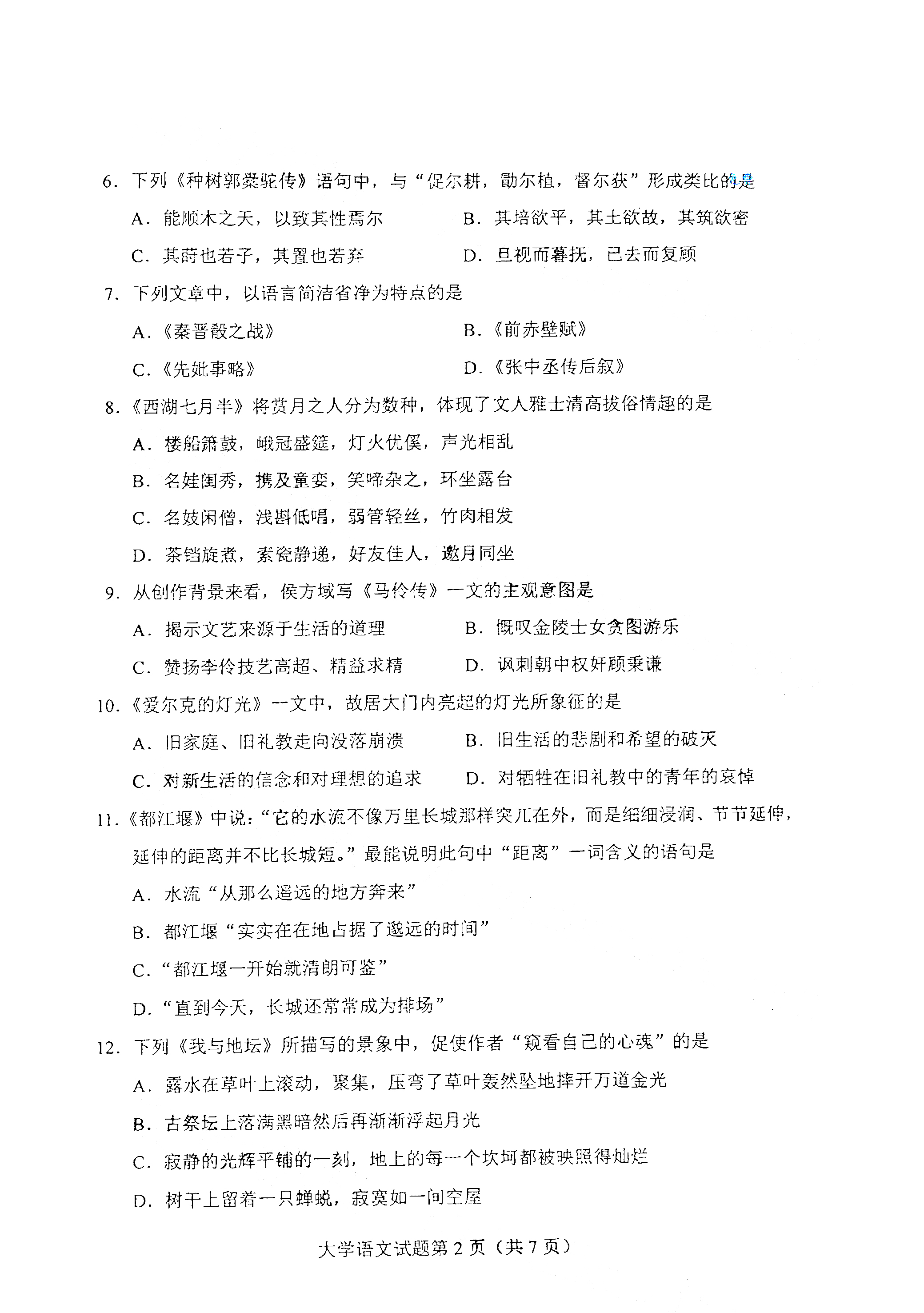 所在位置:廣東省自考網 > 試題題庫 > 自考試卷 > 廣東自考2021年4月自考04729大學語文真題試卷